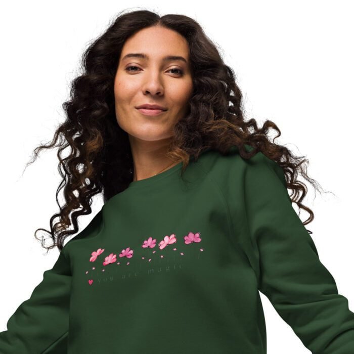 Džemperis be gobtuvo, klasikinio unisex dizaino, su užrašu „YOU ARE MAGIC”. Džemperis gražiai dera su kitais drabužiais, nuo sportinių marškinėlių iki elegantiškų sijonų.. Džemperis pagamintas iš 80% organinės medvilnės