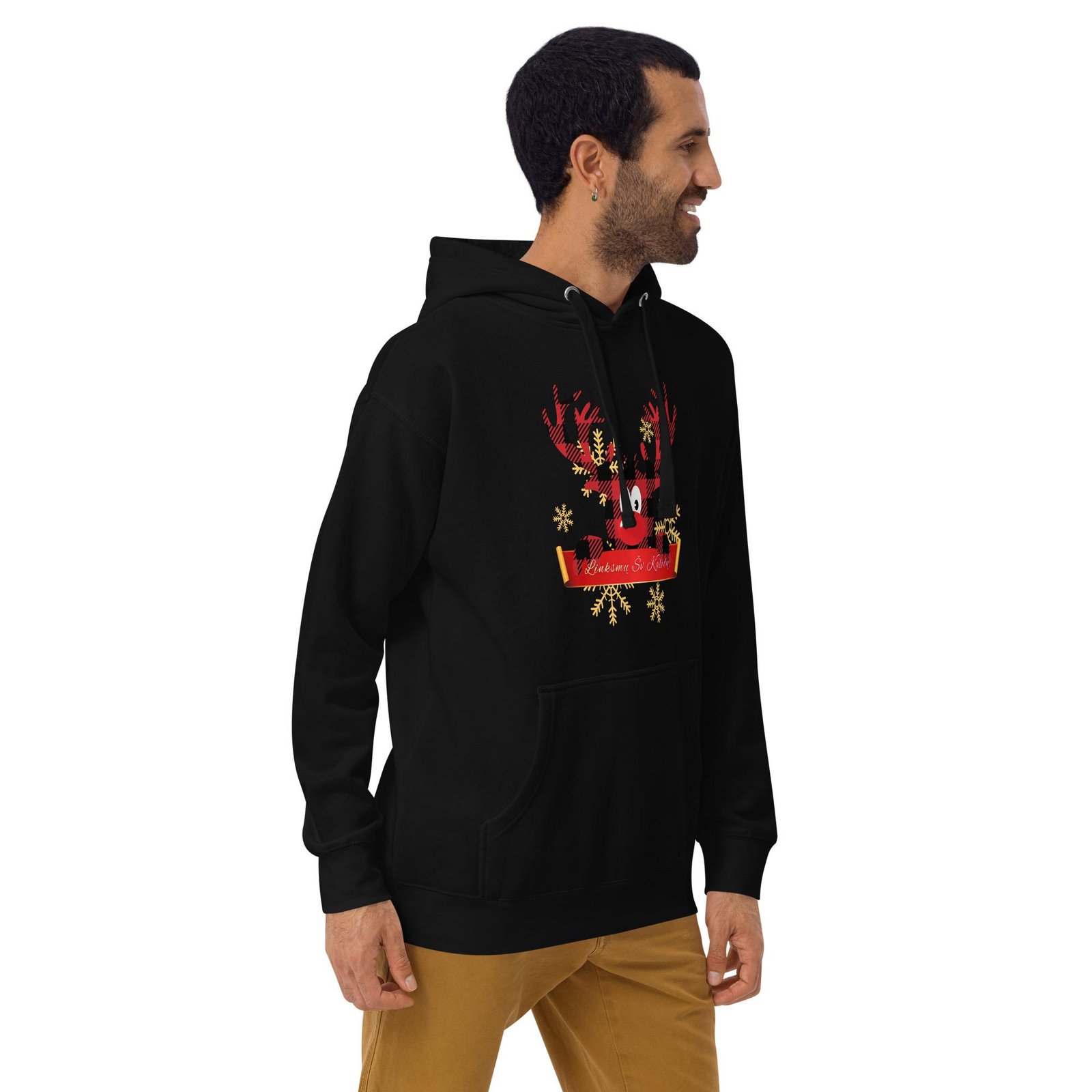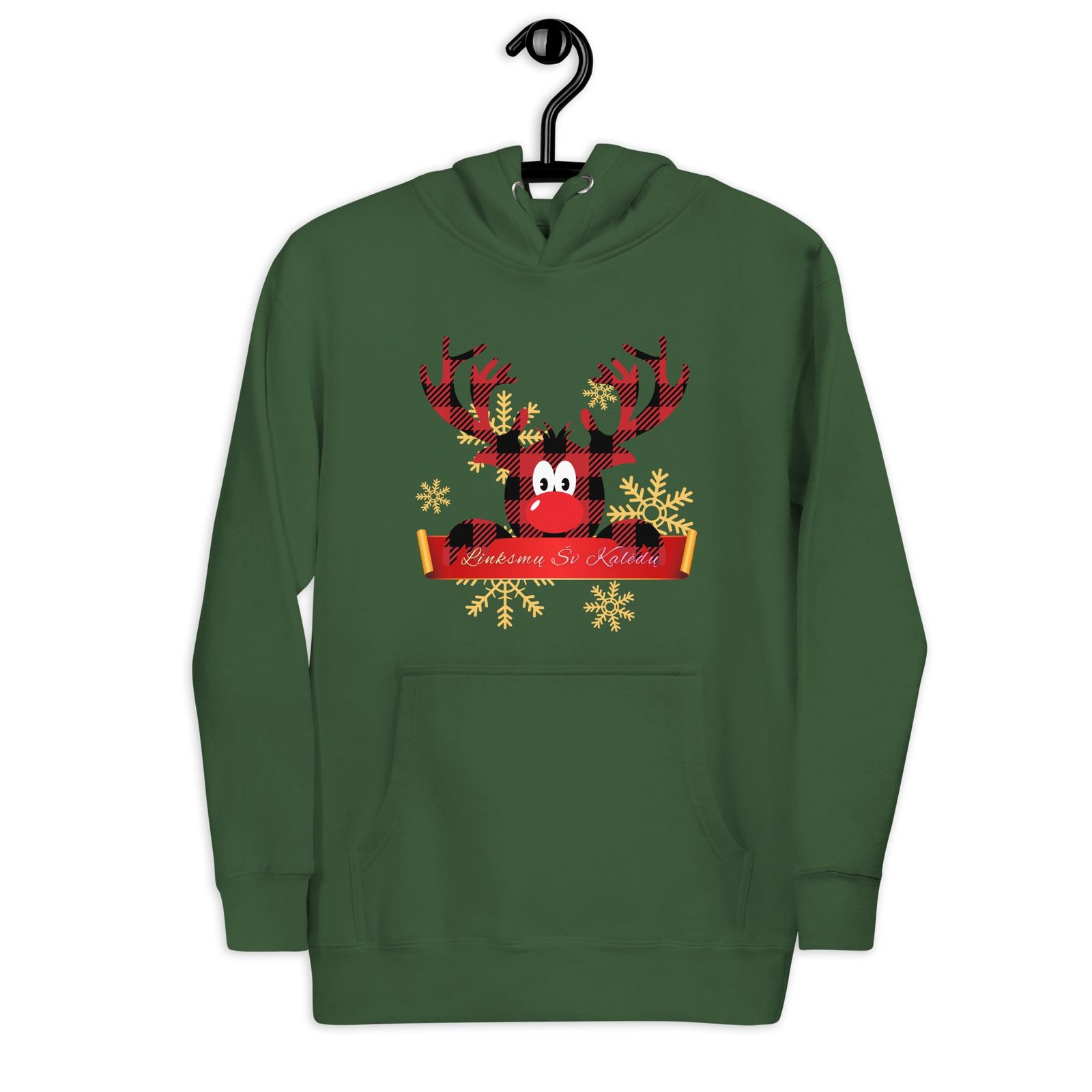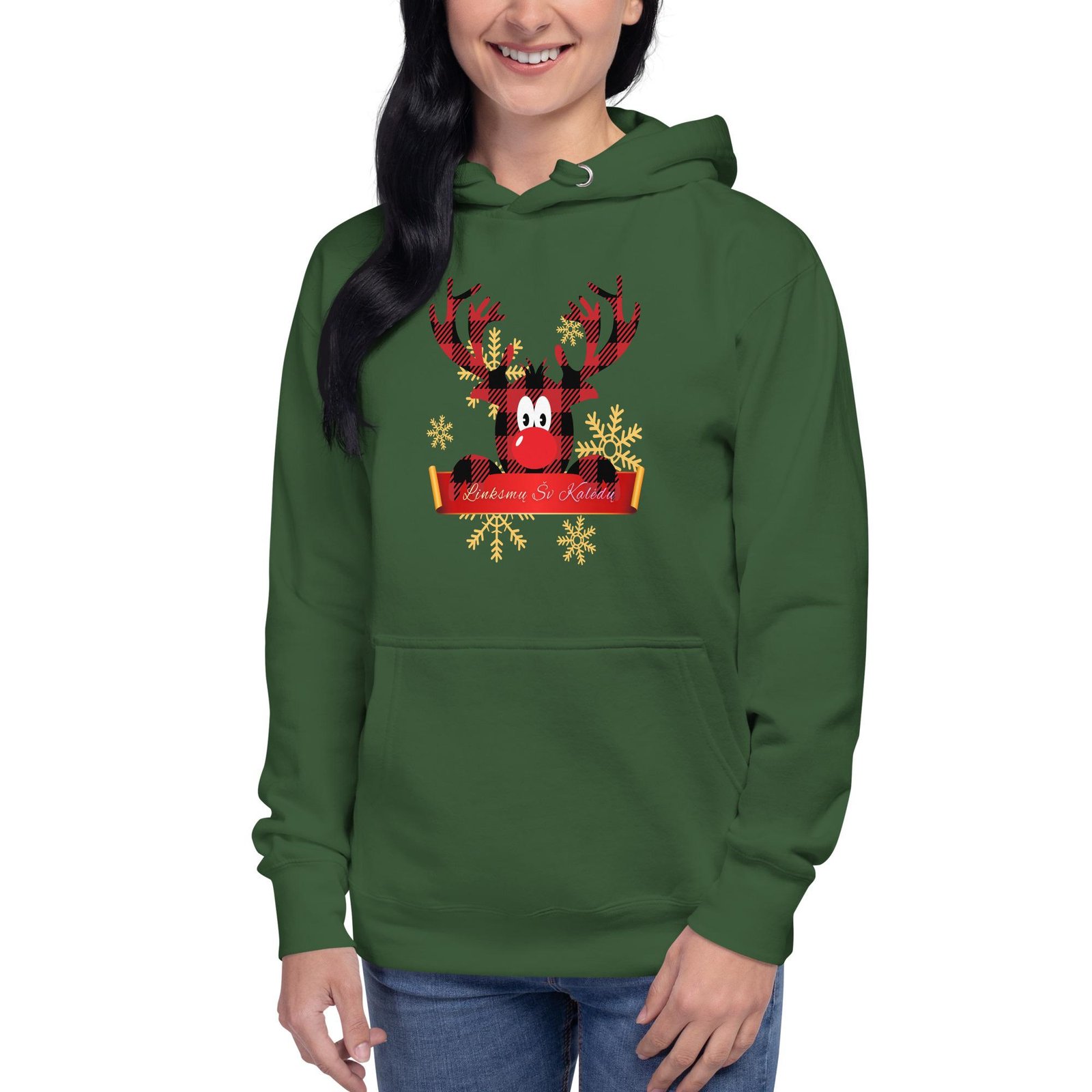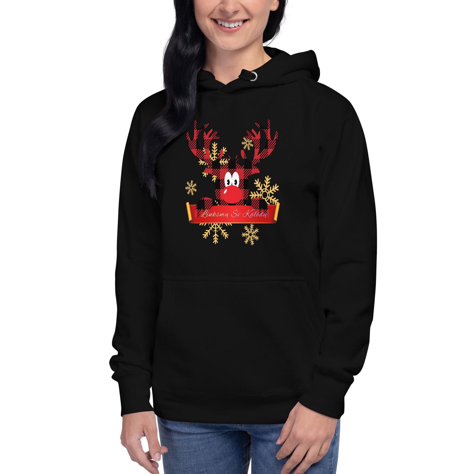 Šis Kalėdinis džemperis su gobtuvu apkabins jus šiluma taip, kaip moka tik jaukus žiemos sezonas. Patogus, minkštas ir papuoštas subtilia šventine nuotaika – puikus pasirinkimas žiemos dienoms ir vakarams.