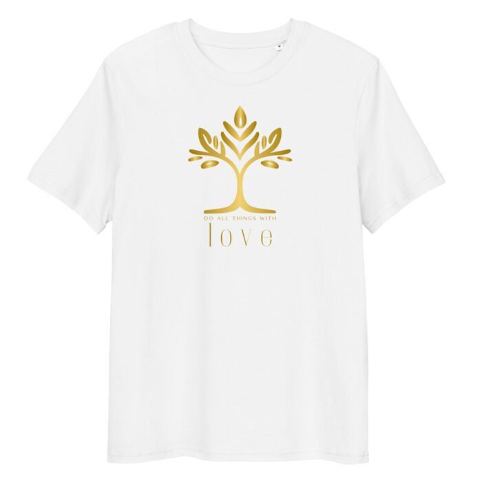Aukštos kokybės marškinėliai su užrašu „DO ALL THINGS WITH LOVE”. Pagaminti iš 100% organinės medvilnės – kokybiški, minkšti ir universalaus dizaino, deraprie bent kokio stiliaus.
