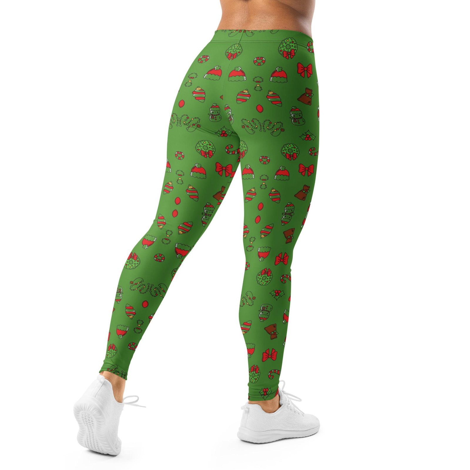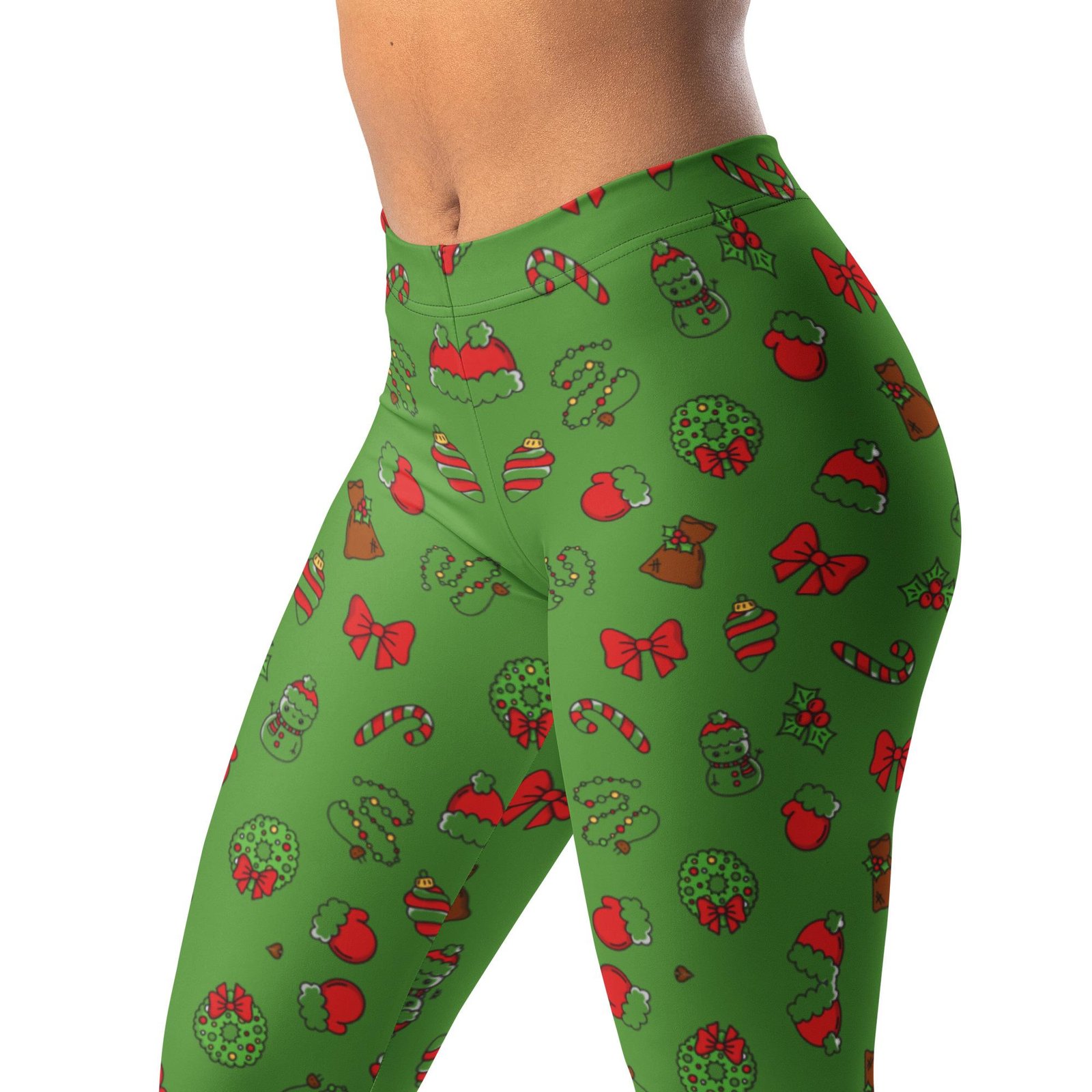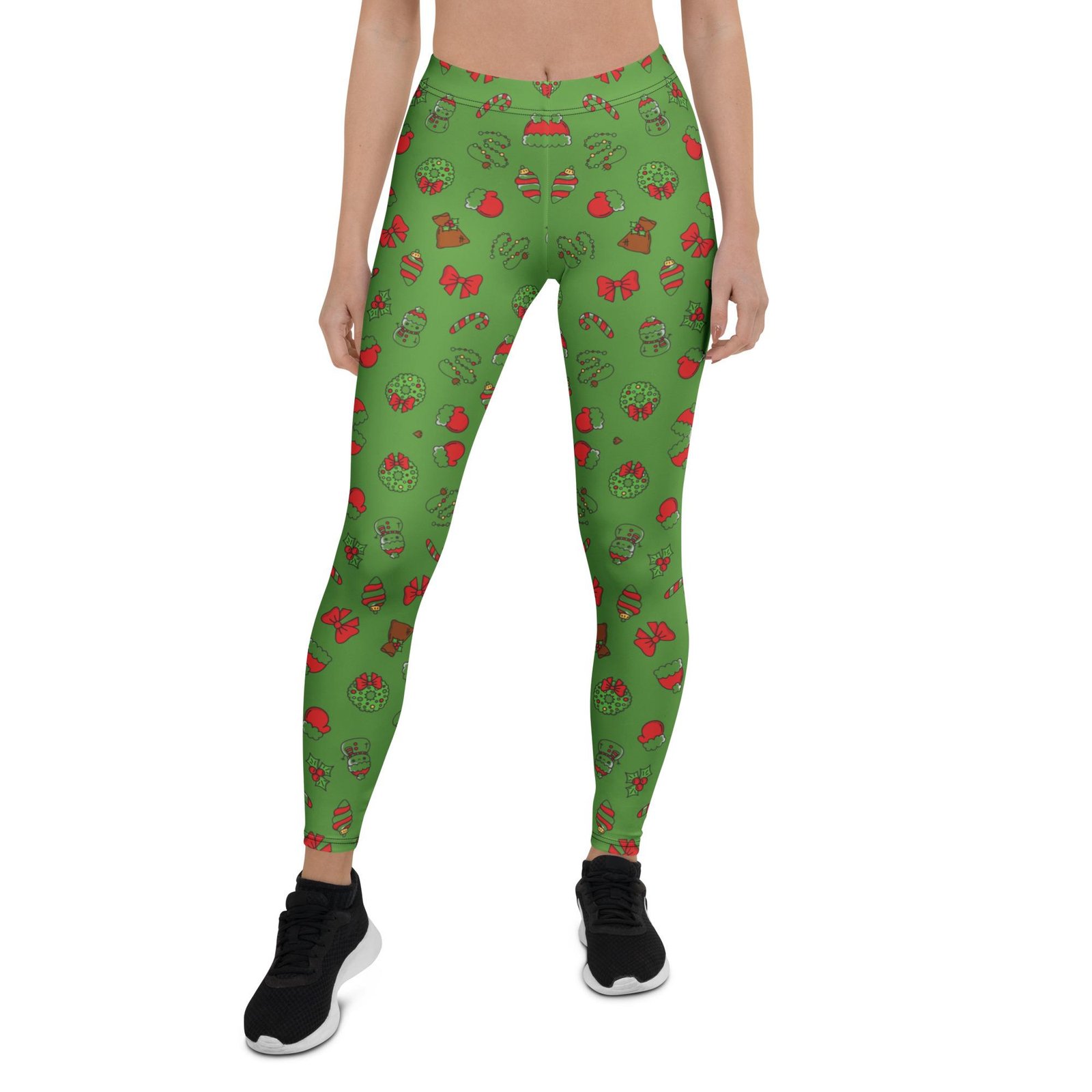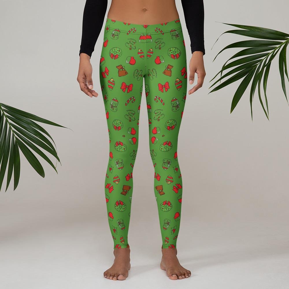 Temprės laisvalaikiui ir sportui, dekoruotos eglučių, dovanų ir šventinių simbolių raštu. Žalias kalėdinis temprių raštas, elastingas audinys leidžia laisvai judėti. Puikus pasirinkimas jaukioms Kalėdoms.