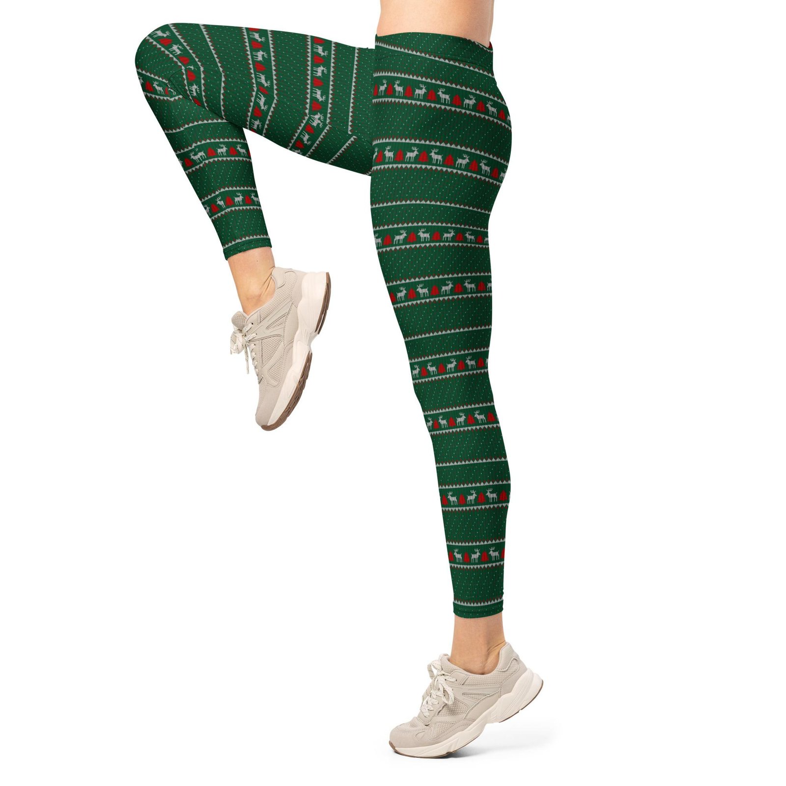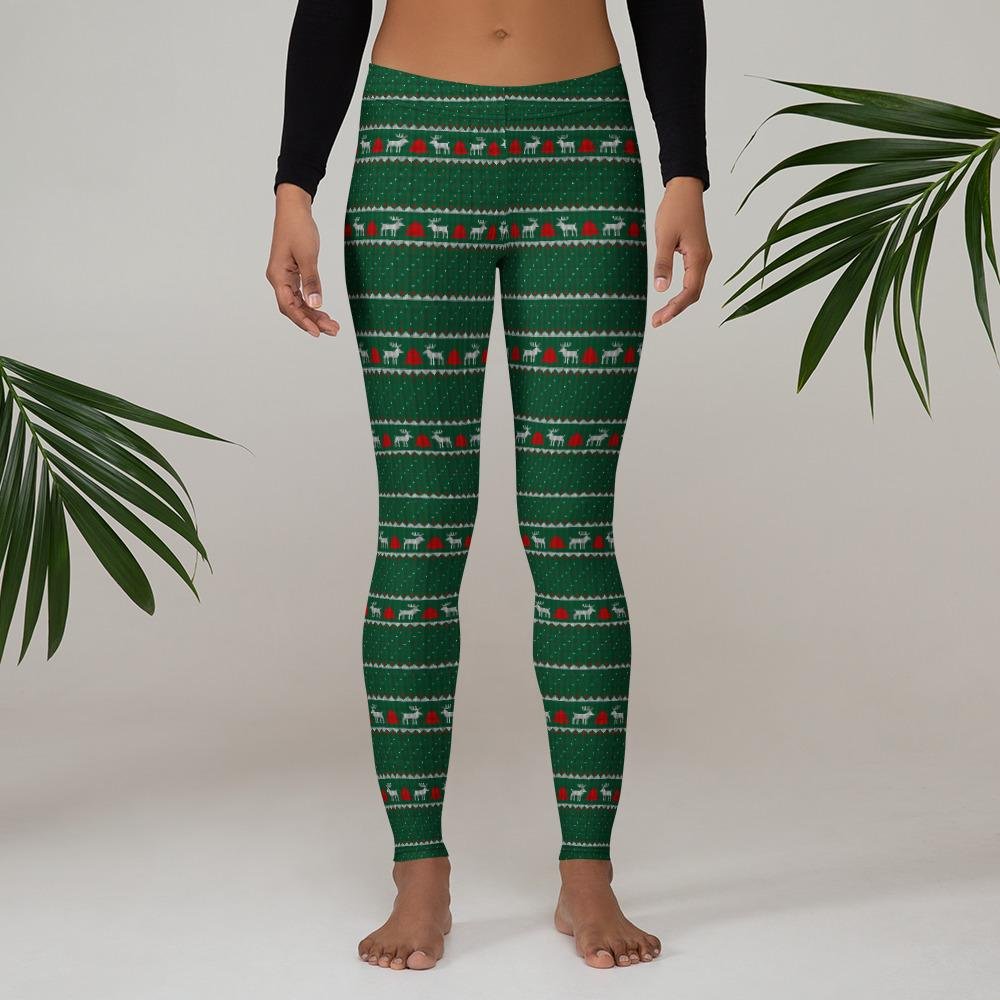 Žalios temprės su šventiniu linijiniu raštu moterims. Patogios, tamprios ir išskirtinės — puikiai tinka aktyviam laisvalaikiui, šventėms bei sportui.